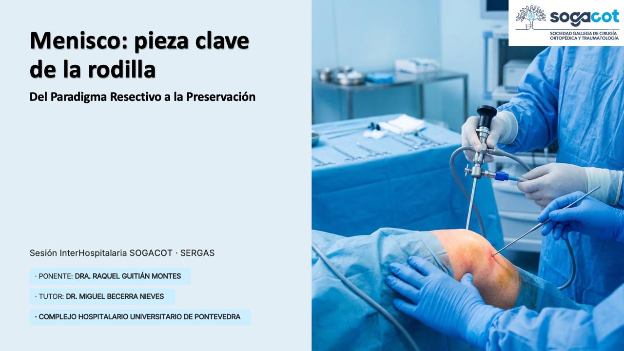 La Dra. Raquel Guitián Montes (R5) del servicio de COT del CHOP nos hablará sobre «Menisco: Pieza Clave de la Rodilla. Del Paradigma Resectivo a la Preservación».